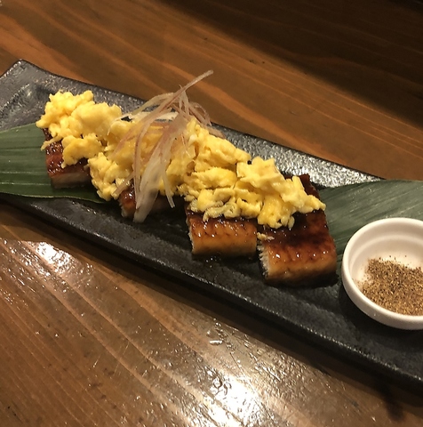 うなぎの蒲焼にトロトロ卵をトッピングした逸品です。