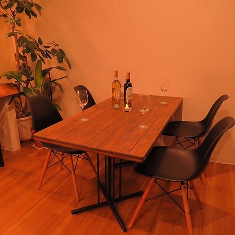 内は木の温かみが感じられる「ちょっとイイ感じ」の空間で、ご宴会はもちろん、デートや一人飲みにも最適です。オシャレで落ち着いた空間で、心ゆくまで創作料理と美酒を堪能し、日常を忘れる憩いの時間をお過ごしください♪