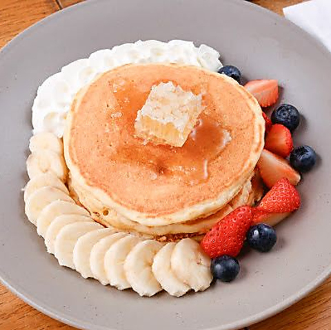 クリームチーズ入りの生地が大人気のパンケーキ♪ 記念日にはメッセージプレートもご用意♪