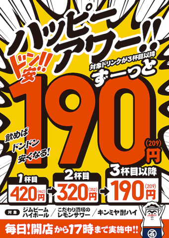 1杯、2杯、3杯と飲めば飲むほどお得になるドリンク、ドン安実施中!昼飲みお得にしませんか♪