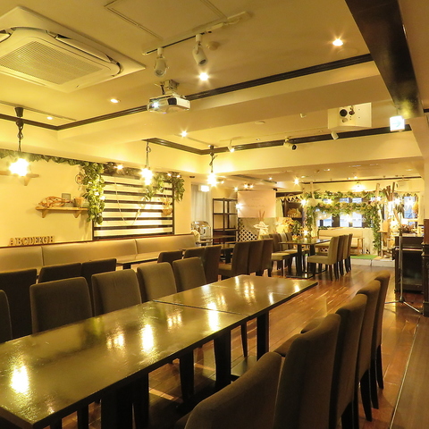 大人数対応可能なパーティースペース! 何名様でも貸切となり、他なお客様の出入りもないプライベート空間♪着席60名様まで/立食なら120名様までParty可能!