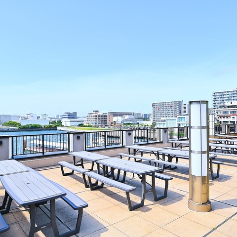 最大120名様まで収容可能な広々とした屋上スペースでは海を眺めながらお食事をお楽しみいただけます♪昼間の爽快な青空や夕方のサンセットを見ながらのお食事など、様々なシチュエーションでご利用ください。