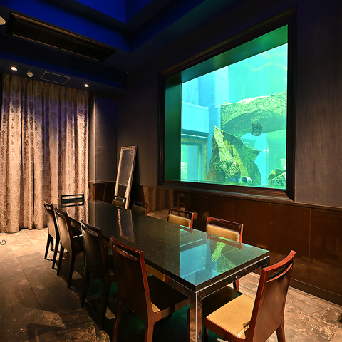 カップルにぴったりな二人個室や、幻想的な圧巻ブルーを彩る巨大水槽前のテーブル席も多数。水槽前は人気のお席です☆