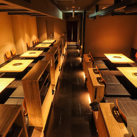 全席個室で、プライベート感たっぷりで特別なひとときを演出します。大切な人との会話を楽しみながら、焼肉を心ゆくまで堪能できる空間です。デートや接待、家族の集まりなど、様々なシーンに最適で、落ち着いた雰囲気が魅力。高級感あふれるインテリアと照明が、リラックスしながらゆったりとした時間をお過ごしください。