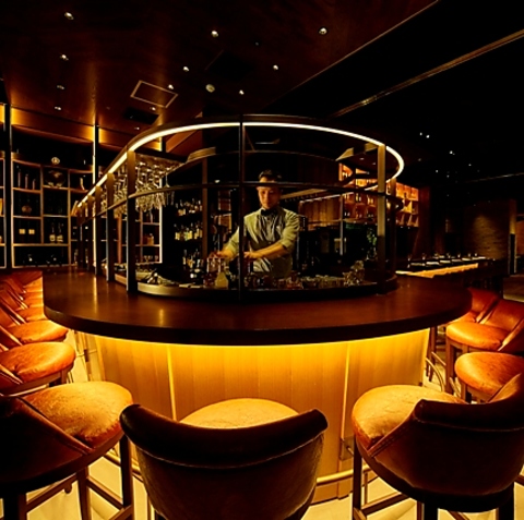 【1名×9席】バーテンダーを囲むかたちのバーエリア。お好みのカクテルをご用意致します。スタッフとの会話をお楽しみください