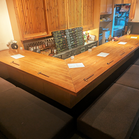 ふかふかソファにゆったりとしたカウンター席。現在は仕切りを設置しております。
