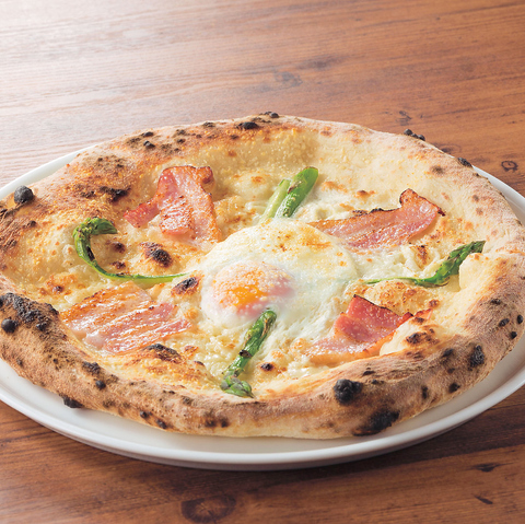 厳選チーズを贅沢に使用した、チーズ好きにはたまらない逸品♪500℃の高温で一気に焼き上げることで、外はカリッと香ばしく、中はモチモチとした理想的な食感に仕上がっています。はちみつと熱々トロトロのチーズは、濃厚な風味とコクが口いっぱいに広がり、ワインのお供にも最適です。8インチ1150円です★