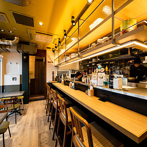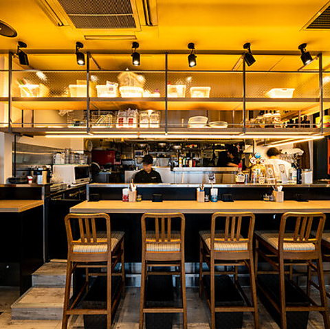シェフの調理を目の前で楽しみながら一杯♪オープンキッチンの店内は食欲をそそる香りで溢れています!