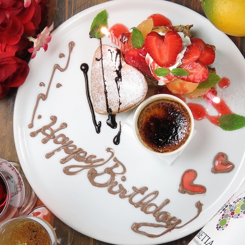 お誕生日や結婚祝いなどのサプライズにおススメのデザートプレートのご準備もOk☆1,100円~