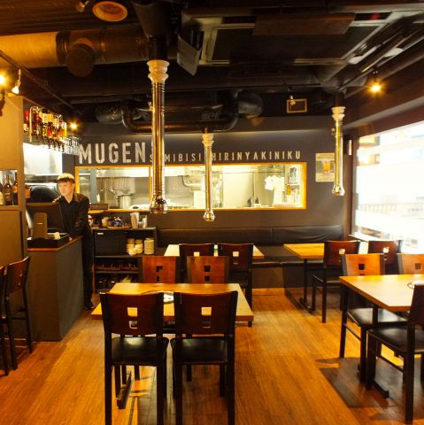 清潔感ある広々とした店内。テーブル通しの間隔がしっかりととられているから、窮屈じゃないし周りを気にせず会話を楽しめます♪デートや女子会、会社の宴会や打ち上げなど、様々なシーンでご利用頂けるのもMUGENの魅力。30人までの貸切も可能!
