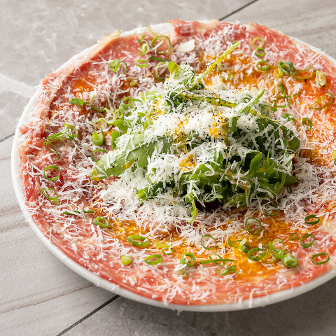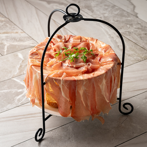 生ハムとサラミが豪華に盛り付けられたタワーは見て楽しい×食べておいしい逸品となっております★ほどよい塩気がお酒を進めさせること間違いなし◎他にも、カルパッチョやカプレーゼなどワインに合うおつまみを豊富にご用意しておりますので、お好きな組み合わせを見つけてください♪