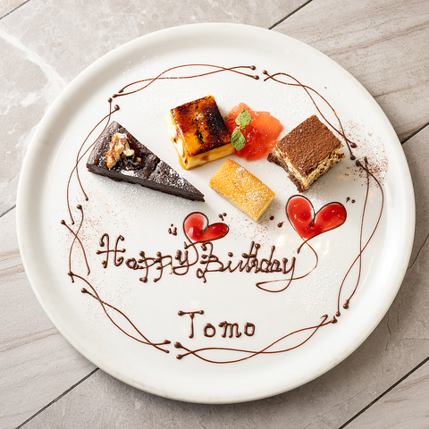 メッセージ付きデザートプレートをご用意いたします♪誕生日や記念日などの特別な日にもご利用ください◎
