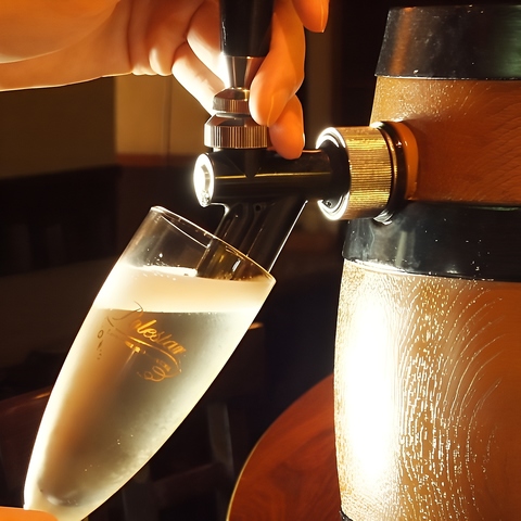 【1】まずは樽から抽出するフレッシュな「スパークリングワイン」で乾杯♪もちろん「生ビール」もご用意しております!!豊富な種類の「スパークリングワインカクテル」も女性に大人気です★