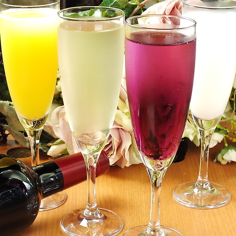 フレッシュなスパークリングワインだけでなく、スパークリングワインが女性を中心に大人気♪飲み放題コースでは、ビール、ワイン、カクテルだけでなく、ノンアルコールカクテルが充実しているため、お酒が苦手が肩がいても安心♪皆さまでお楽しみいただけますよ◎