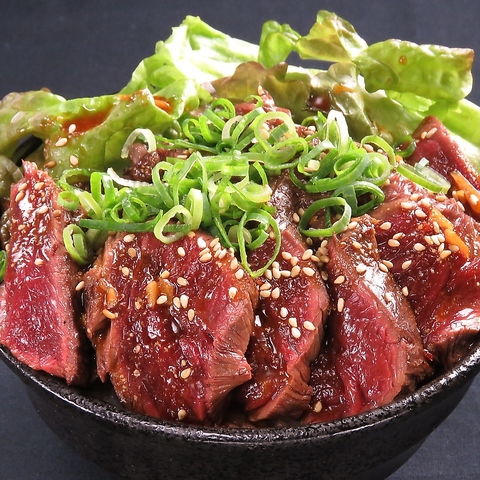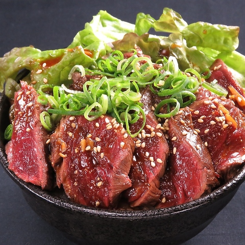 自信を持ってご提供するお肉を、特製甘辛ダレとステーキソースで仕立てました。A4等級黒毛和牛はポン酢とわさびで。いずれも、絶品の贅沢丼!!A4等級黒毛和牛ユッケ丼も大人気です◎
