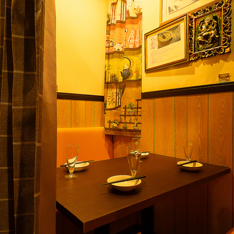 店内は植物が茂り、オリエンタルな落ち着いた雰囲気です。人気のソファー半個室は人気です♪【2室限定】ただいま、通常6名様の個室を3名様でもご利用可能にしております!1人ずつのプレート料理プランもご用意あり★幹事様無料プランもあります!ご予約はお早めに!!※個室希望のお客様は予約後に必ずお電話でご確認お願い致します。」