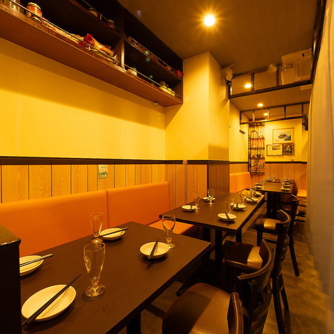 広々としたテーブル席が自慢の店内は、片側ソファ席でくつろぎやすさ抜群!色とりどりの内装が目を引き、異国の雰囲気を楽しめます。普段のお食事やちょっとした集まりにもおすすめです♪