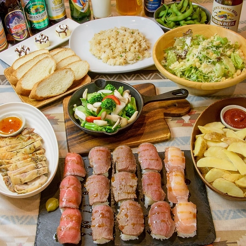 炙り肉寿司までもなんと食べ放題!最大3H飲み放題付!素材からこだわったご宴会コースです。