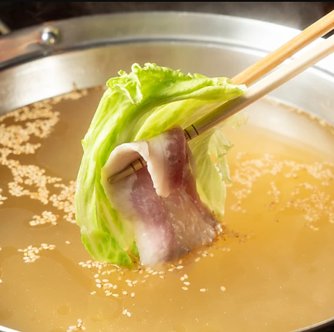 -当店一番の売りメニュー、「レタスしゃぶしゃぶ」は、お肉とレタスの程よい食感が絶妙なバランスの一品。鶏ベースの出汁はしっかり味がついているので、何もつけずそのままお召し上がりいただけます。豚バラ肉に火を通し、レタスを“しゃぶしゃぶ”してお肉を巻いてお楽しみください◎