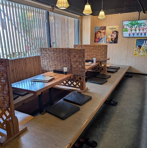 壁が目隠しになるので完全個室でなくてもプライベートの雰囲気が味わえる。