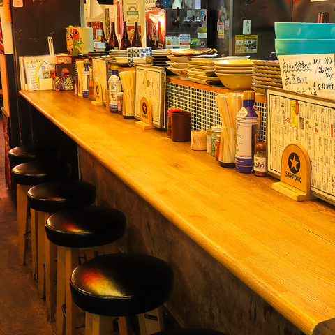 少人数やお一人でも楽しめるカウンター席!昼飲み、仕事帰りの一杯などなど、ご気軽にご利用いただけます!目の前では、備長炭を使用して焼き上げる焼き鳥・焼きトンの臨場感も!!
