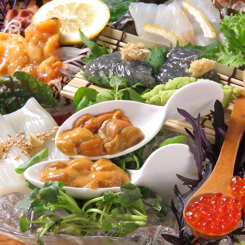 生うに、ホヤ、牡蠣など宮古直送の海の幸がてんこ盛り!宮古育ちの女将が目利きする鮮魚を贅沢に味わえます!会社宴会や接待、女子会や友達となど様々なシーンでご利用いただけます!