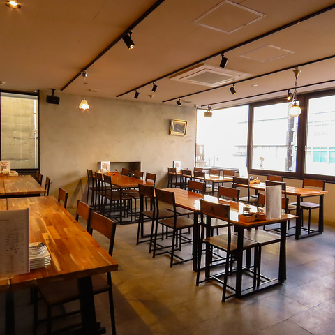 2F席は木の温もり昼夜問わず落ち着ける空間です。