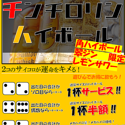 チンチロでゾロ目が出ると1杯サービス!みんなで楽しく美味しく飲みましょう★