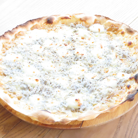 釜揚げしらすと柚子胡椒の新玉ねぎソースのピザ