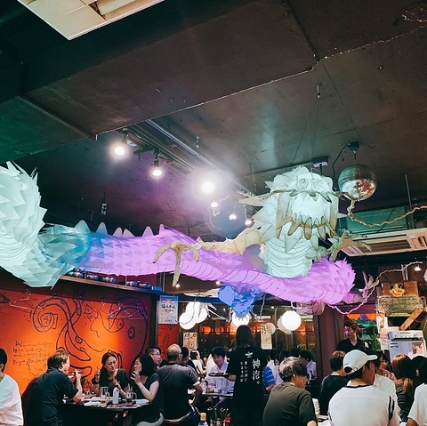 頭上をドラゴンが旋回する特徴的な店内にはテーブル席と気軽に立ち寄れるカウンター席をご用意いたしました