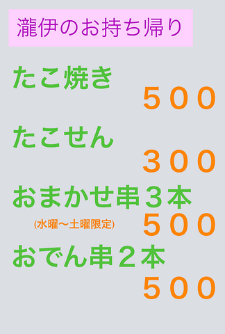 壁を見ればメニューがいっぱい!!お席にももちろん置いてありますが、壁のものはそれぞれに味があって見ていて楽しい♪家族で、カップルで、会社の仲間といろんな機会に瀧伊 新代田をご利用下さい。皆様のご来店スタッフ一同お待ちしております♪