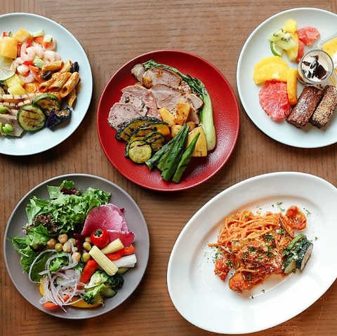 朝食・ランチには色とりどりの食材、お料理が並びます。どれを選べばいいか迷ってしまうほど!