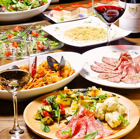 イタリアンやフレンチで修行を積んだシェフが手がける女子会コース♪ローストビーフや鮮魚カルパッチョ、選べるパスタなどお肉もお魚もパスタ、デザートまで全部楽しみたい女子人気の料理が満載!しかも嬉しい飲み放題付き☆