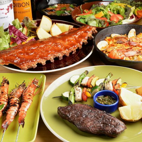 ★イチボ肉のステーキやハーブ&スパイス香るジャークチキン付き♪MISONO weekend BBQの炭火焼BBQ料理を飲み放題と共に存分に楽しんでいただけるボリューム満点の内容です!!