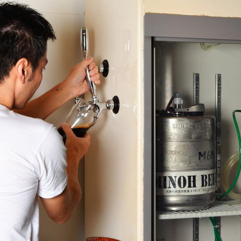 その時期により変わる樽生クラフトビールを直接サーバーから注ぎ入れます!鮮度も良く、熱くなる時期にはピッタリのクラフトビールをお楽しみください!
