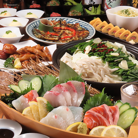 博多駅筑紫口徒歩30秒★もつ鍋又は水炊きから選べるメインや仙台風牛タン等堪能『極コース』5,980円
