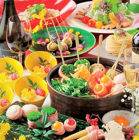 自慢の逸品がたっぷり楽しめるボリュームも満点なコースは全14品4500円からご案内。糸島産の新鮮な野菜を始め、厳選されたお肉、定番の串から変わりダネの串などが勢ぞろい。友人との集まりやオシャレな空間でのデート、飲み会や各種ご宴会で当店の味をぞんぶんにお楽しみください。