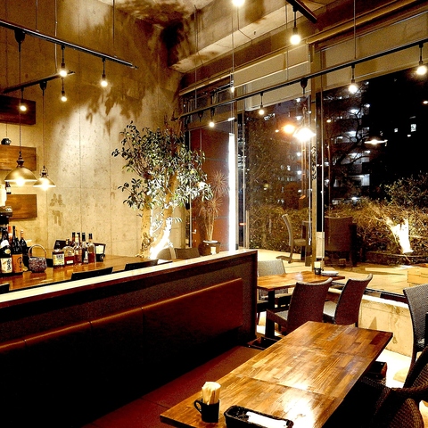 【床から天井まで一面のガラス張り 天井4Mの開放的空間】北幸の川沿いに立つ、大きなガラス張りの当店は、なんといってもその開放感が魅力。天井も高く打ちっぱなしの店内は、太陽の光一杯に溢れるランチ時にもおすすめ。お昼席のみ予約はrettyにて受け付けております◎