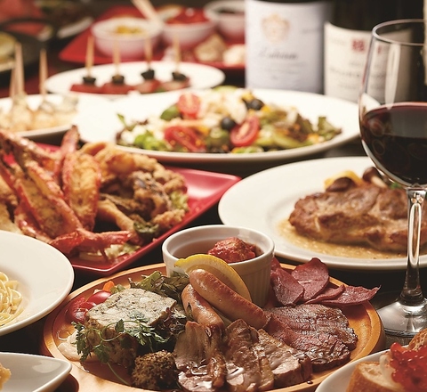 人気のお肉メニューがズラリと並んだお肉満載コース、いろいろ食べれてデザート付きの女子会コース、定番バルグランコース等多彩なパーティプランは税込3500円から。飲み放題は生ビールなど約50種、延長や単品追加OK、バースデーや送別会のメッセージ付きデザートプレートなどお気軽にご相談ください!