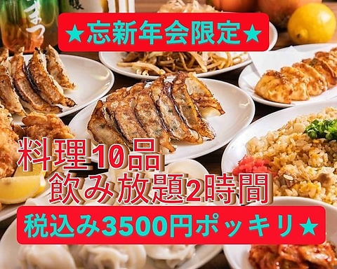 こだわりの自家製餃子を5種類も楽しめる14品の料理がついた『餃子極み三昧コース』が飲み放題2時間付き、税込み4500円ポッキリ♪♪各種ご宴会、女子会、会社宴会、忘年会等々・・・おすすめのコースをご用意しております!大人数の宴会も承ります★