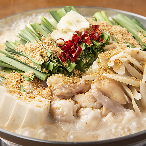 博多名物といえばもつ鍋!当店では「濃厚白味噌もつ鍋」「背脂黒醤油もつ鍋」「絶品明太もつ鍋」をご用意!厳選したモツと食材を使用した本場の味に仕上がっております。飲み放題付き宴会コースでもお楽しみいただけますので、是非味わっていただきたい逸品です!