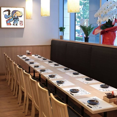 団体利用や宴会に便利な広々とした空間を完備しています。グループでの集まりにぴったりなテーブル席は、各種宴会にご利用いただけます!ゆったりと座れるレイアウトなので、リラックスしながら会話も弾みます。大型宴会でも一体感が生まれるよう、明るい雰囲気を大切に心がけております。