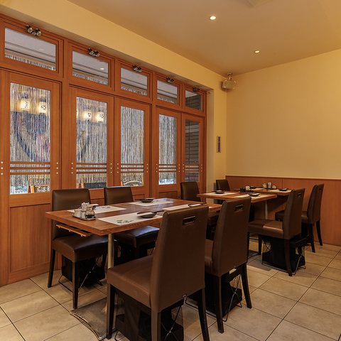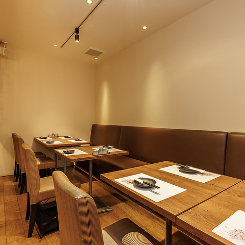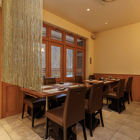 店内奥には周りを気にせずゆったりとお過ごしいただける小上がりの半個室をご用意しています。落ち着いた色合いの空間でリラックスできるのが嬉しいポイント。最大12名様までご利用できるので、少人数でのご宴会などプライベートなシーンに最適です◎人気のお席ですのでご予約はお早めに!