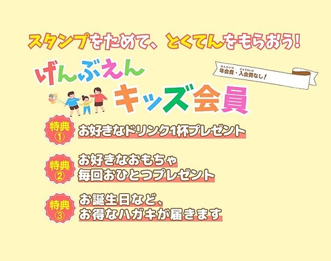 キッズ会員限定!来店回数に応じた特典やおもちゃのプレゼントがあります(^^)