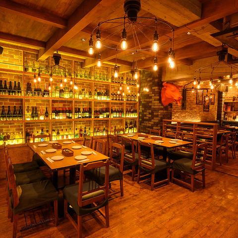 電球がアクセントとなり、温かな光が明るい店内を照らします。デートにピッタリな雰囲気で、居心地が良く、ゆったりとした時間が流れる空間◎美味しい料理とお酒を楽しみながら、特別なひとときをお過ごしいただけます!