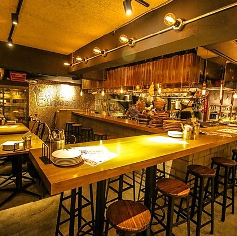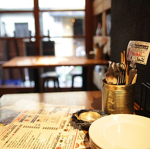 入り組んだ店内は、まるで秘密基地のよう?!店の中央には臨場感溢れるオープンキッチンがあり、カウンターに座ればそこはもうエンターテイメント★女子会や会社飲み会など、どんなシーンも対応OKの使い勝手の良いお店!なんと外席はペット連れもOKです◎