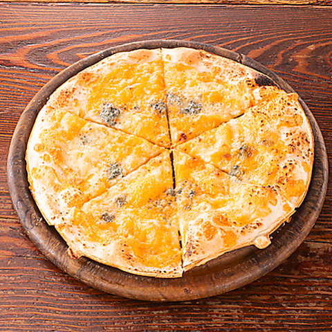 ゴルゴン、チェダー、ナチュラル、グラナバターノの4種チーズのピザ