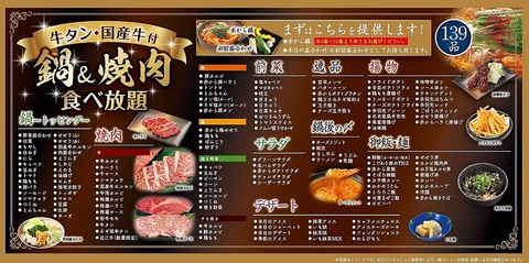 焼肉食べ放題or赤から鍋食べ放題or両方楽しめる焼肉&鍋食べ放題コース♪一品料理も食べ放題!?