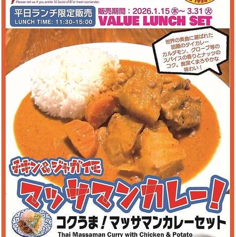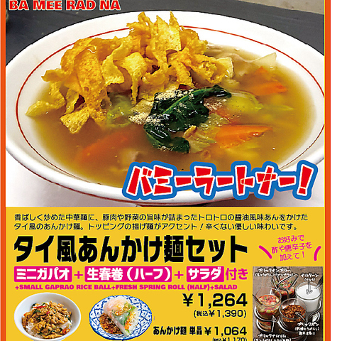 お得なランチセットを各種ご用意致しました♪お好きなヌードル&ミニガパオのセット/お好きなヌードル&ミニ生春巻セット/タイ屋屋台飯セット/ガパオ&グリーンカレーセットをお得にお楽しみ頂けます!セットは全てサラダ付き♪平日ランチタイムはおすすめティーとデトックスウォーターをドリンクバーにご用意♪お好なだけどうぞ!