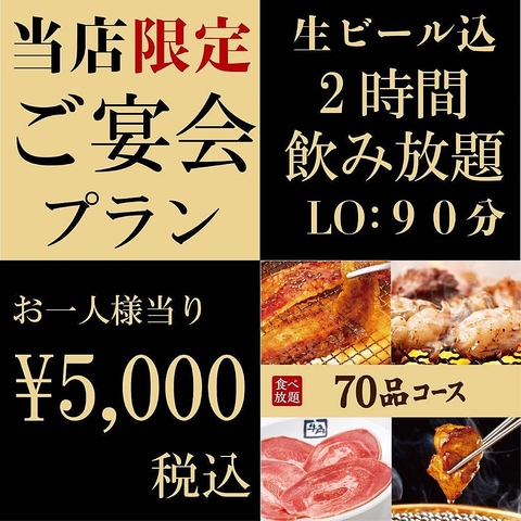 人気のメニュー70品以上が食べ放題!!食べ飲み放題も、もちろん飲み放題だけもありますよ!